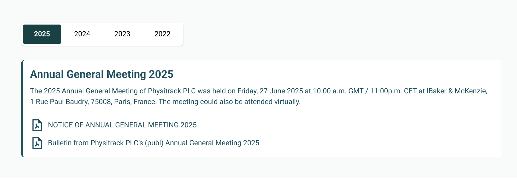 Physitrack Group IR